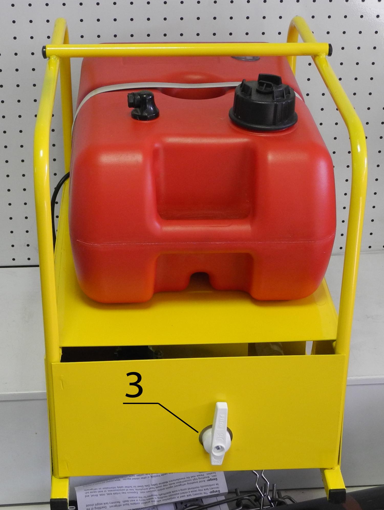 Перед началом работы необходимо провести визуальный осмотр установки. Убедитесь в том, что нагнетательный вентиль «1» и возвратный вентиль «2» находятся в положении «Закрыто», а предохранительный вентиль «3» в положении «Открыто», (рис. 4 и 5). Убедитесь, что резьбовые соединения сменного фильтра BCL 164 надёжно затянуты (рис. 2). Наденьте шланги (в комплект поставки не входят, рекомендуем шланги длиной не менее 1,5 метра) на присоединительные штуцера вентилей «1» и «2» и закрепите их с помощью винтовых хомутов (в комплект поставки не входят).